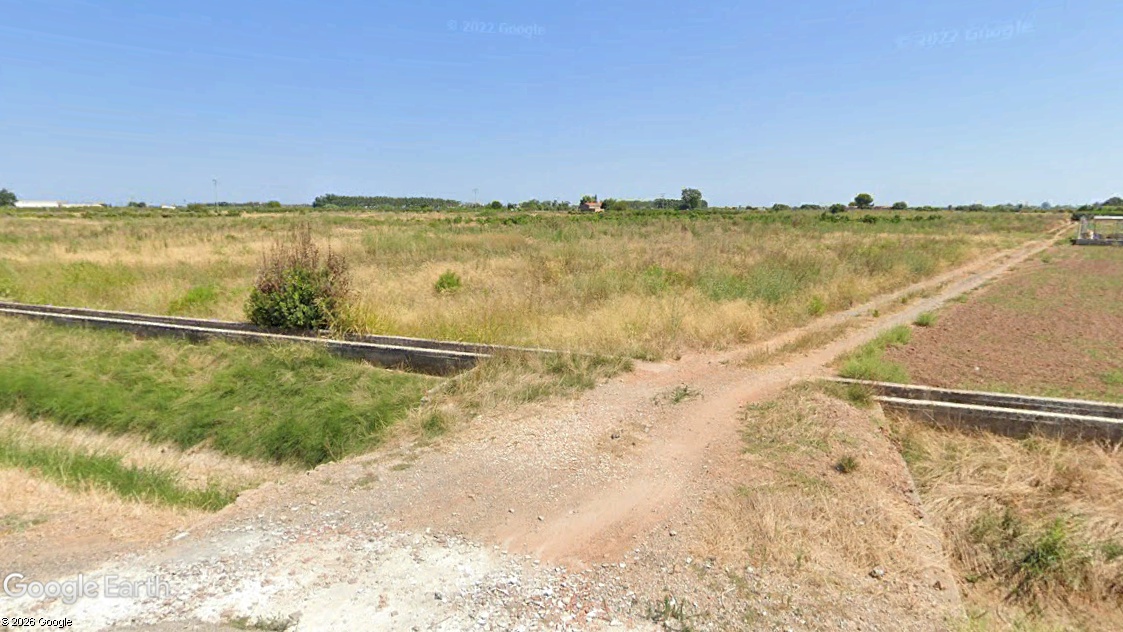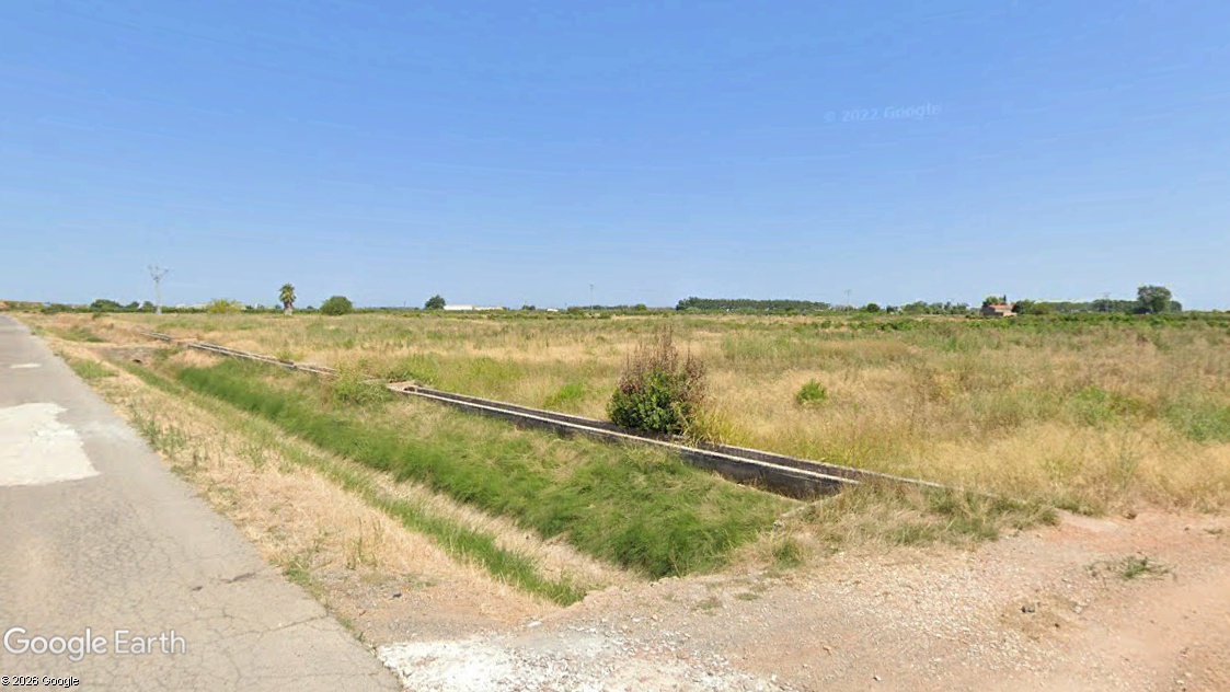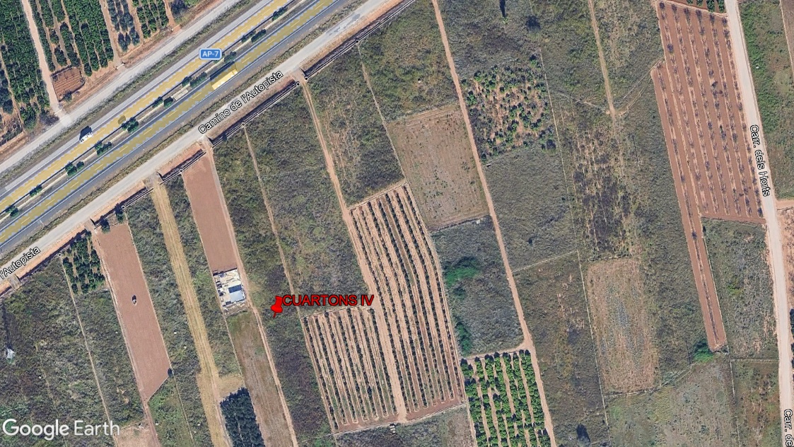 Parcela de forma rectangular cuyas dimensiones aproximadas son de 240 m x 22 m, a pie de carretera y de orografía llana con una pendiente media del 0,3 % y altitud de 4 m.s.n.m. El sistema de riego es tradicional mediante acequias de hormigón que bordea la parcela.