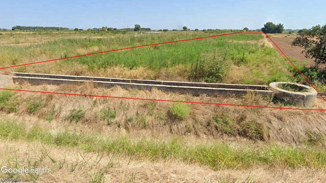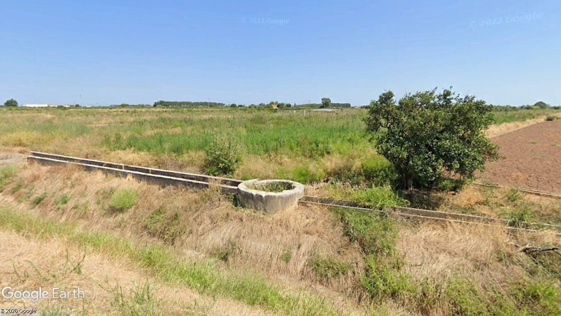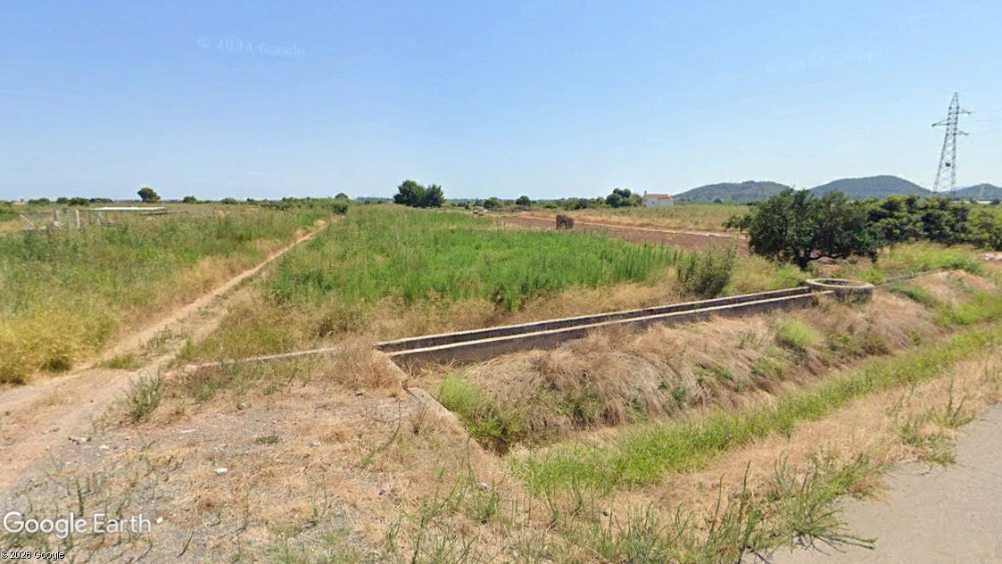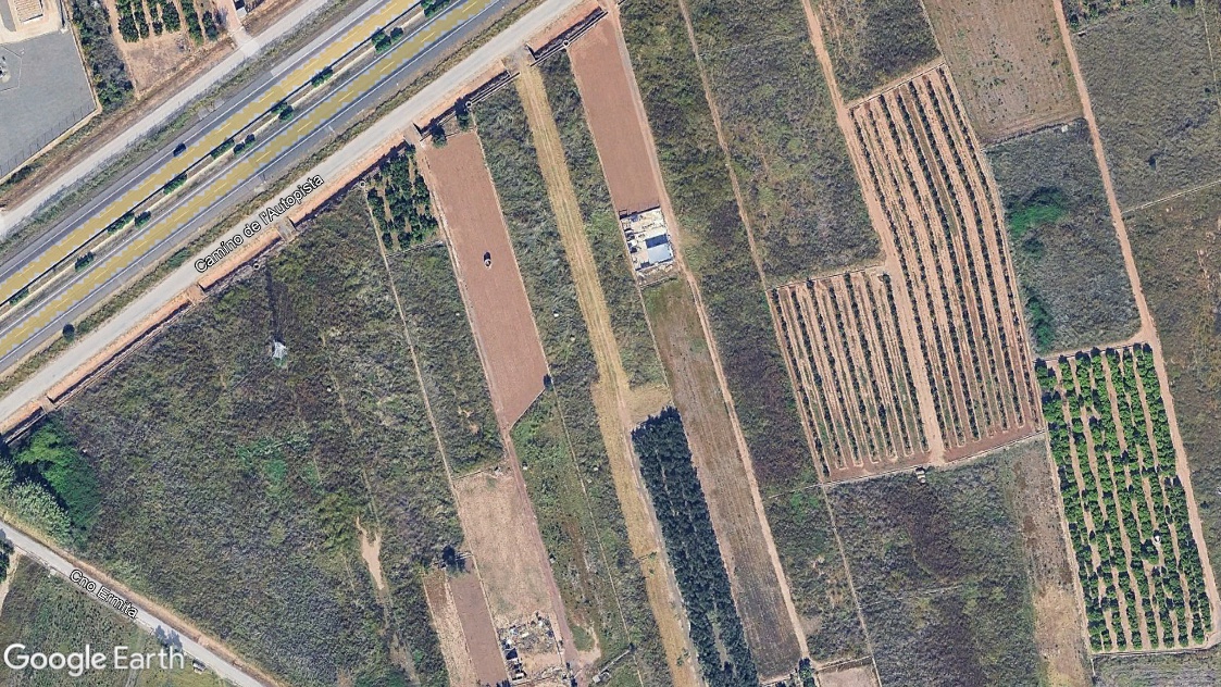 Parcela de forma rectangular cuyas dimensiones aproximadas son de 166 m x 20 m, a pie de carretera y de orografía llana con una pendiente media del 0,01 % y altitud de 4 m.s.n.m. El sistema de riego es tradicional mediante acequias de hormigón que bordea la parcela.