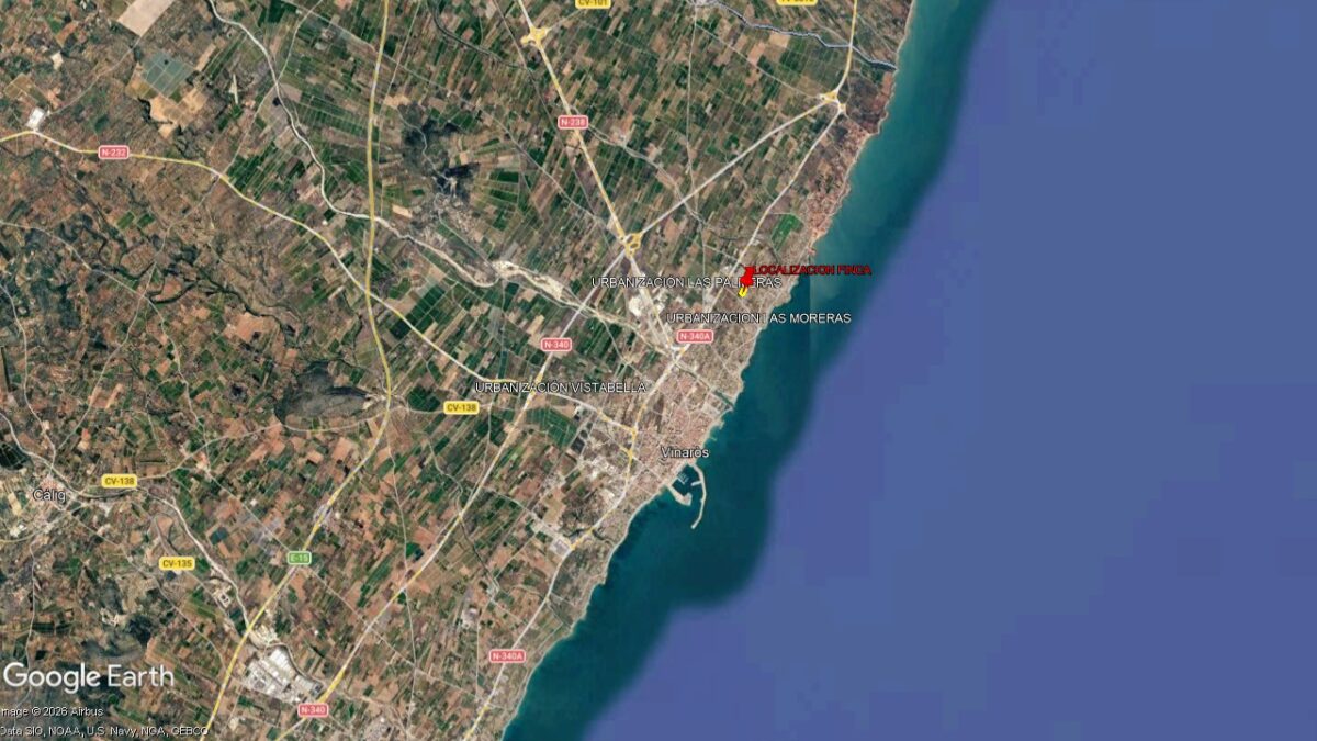 Se vende fantástica finca ideal para inversión, en suelo urbanizable residencial, en el término municipal de Vinaròs, (Castellón), al Norte de la ciudad, junto a la Urbanización Saldonar – La Castellana, con una superficie de 6.640 m², que linda con la calle de L’Escota, y se localiza a 350 metros de la carretera N-340A y 650 la playa.