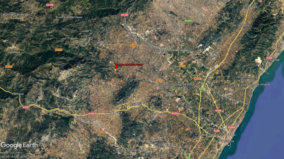 Se vende fantástica finca rústica de secano, en el término municipal de Rossell, (Castellón), localizada a 5,5 km al Sur del municipio, junto al Rio Servol, a la que se accede por un camino en parte asfaltado y en parte de tierra, con una superficie de 20.775 m², donde existe un almacén de 28 m².