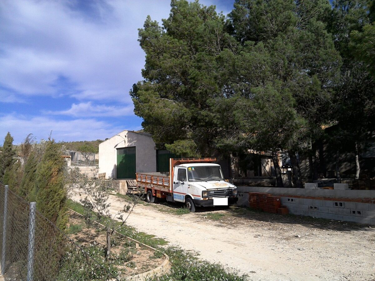 Se trata de una finca formada por tres bancales, dos plantados de olivos y uno sin arbolado, vallada en todo su perímetro, donde existe una vivienda de dos plantas, siendo la superficie de la planta baja 145 m² y la superficie de la primera planta 82 m², también dispone de una piscina de 20 m², y dos almacenes de 104 m², y 49 m², esta rodeada de monte y de otras fincas similares.