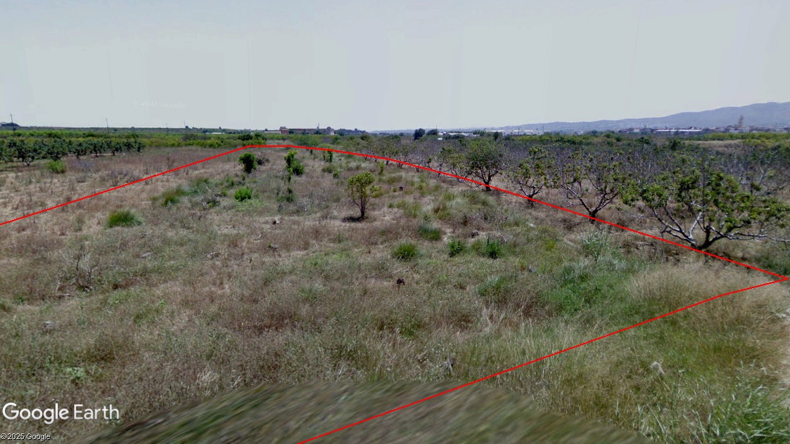 Parcela en forma de rectángulo irregular con dimensiones aproximadas de 80 x 16 metros, con fachada a camino asfaltado. Tiene una orografía totalmente llana con una pendiente media del 0,01 % y una cota de 90 m.s.n.m. El sistema de RIEGO ES LOCALIZADO mediante tubería comunitaria a pie de finca.